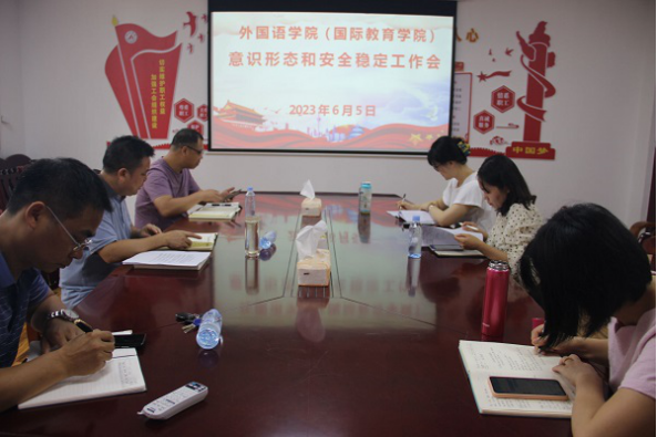 6月5日下午,外国语学院(国际教育学院)党委中心组在外语楼403会议室召开意识形态和安全稳定工作会,会议由党委书记覃春华主持,党委中心组成员参加会议。