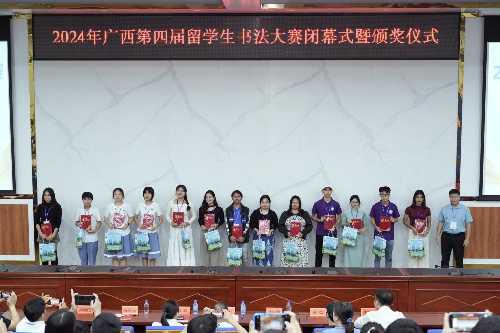 2024年11月1日,由广西高等教育学会外国留学生教育管理专业委员会主办,玉林师范学院国际教育学院承办,广西玉柴机器集团有限公司共同协办的“第四届广西留学生书法大赛”圆满落幕。本次大赛以“文化交流融通,汉字书写相拥”为主题,旨在弘扬中华优秀传统文化,推进书法技艺的传承与发展为基础,以增进国际友谊,促进多元文化的交流发展。我院组织KYI SIN THAW(中文名:张欣兰)、NOAMAN OMAIR(中文名:程力)两名国际学生参赛。