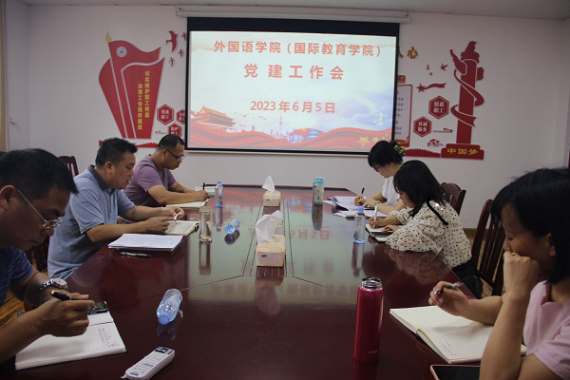 为推进学院党建工作,落实学院“十四五”规划,6月5日下午,外国语学院(国际教育学院)党委中心组在外语楼403会议室召开党建工作会,会议由党委书记覃春华主持,党委中心组成员参加会议。