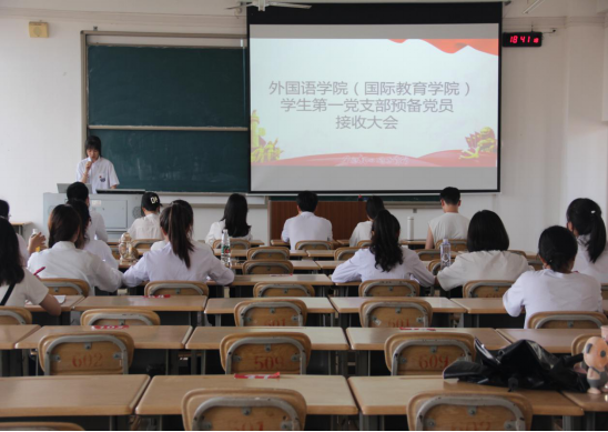 2023年6月6日,外国语学院(国际教育学院)学生第一党支部在格致楼601召开预备党员接收大会,本次会议由李宣颖同志主持,支部书记彭万林以及支部成员参加会议。