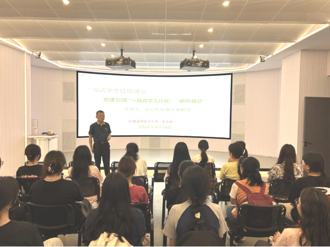 外国语学院(国际教育学院)学生第一党支部贯彻“学习型”党支部建设方向,在2024年4月19日下午邀请到外国语学院(国际教育学院)银龄教师黄运亭教授于实训楼多功能厅为外院学子带来了“研究自己”专题讲座。