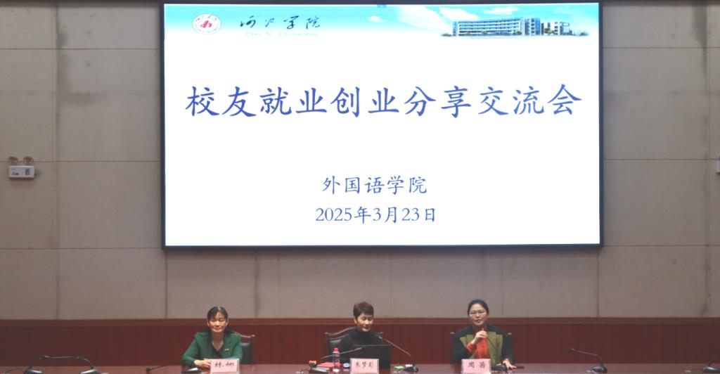3月23日,外国语学院(国际教育学院)在弘毅楼一区205教室成功举办校友就业创业分享交流会。本次活动有幸邀请到了外国语学院03级优秀毕业生朱梦影,为学院商务英语与泰语专业全体在校学生带来干货满满的分享盛宴。此次交流会由外国语学院(国际教育学院)党委副书记周茜主持,副院长林娜出席交流会。