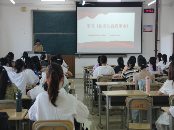 5月29日晚上,外国语学院(国际教育学院)学生第二党支部在格致楼602教室组织学习《论党的自我革命》。支部书记周贵连老师主持会议,支部全体成员参加学习。