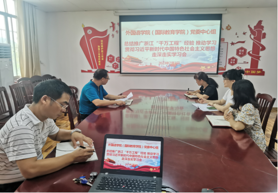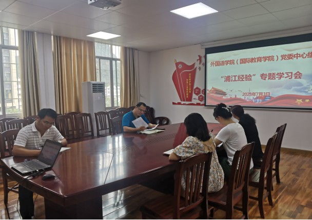 7月3日上午,外国语学院(国际教育学院)在外语楼403会议室举行习近平新时代中国特色社会主义思想专题学习会。本次专题学习的内容为“千万工程”、“浦江经验”以及习近平总书记在文化传承座谈会上的讲话精神。党委书记韦合主持会议,党委中心组成员参加学习。