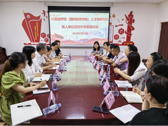 为深化外语学科教育教学改革,推动人才培养与社会需求精准对接,外国语学院于5月10日在外语楼403召开“外国语学院人才培养方案用人单位及校外专家座谈会”,邀请宜州区一中、学院附中、宜州区二中、三中、四中、宜州区民族中学、德胜中学、宜州区桂宜高中、宜州区一小等用人单位代表及校外专家共商外国语学院人才培养新路径。学院领导钟伟轩、李艳飞,专业责任教授,教研室主任参加座谈会。学院副院长钟伟轩主持座谈会。