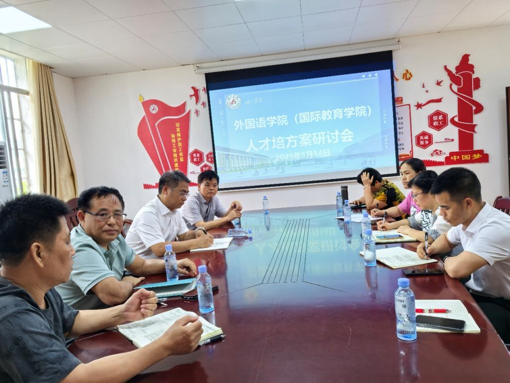 为深化外语教育教学改革,创新人才培养模式,全面提升人才培养质量,外国语学院于2025年5月14日在外语楼403召开人才培养方案高端研讨会。银龄教师王成林教授、李英垣教授,覃锋教授、李晓兰教授以及专业负责人、教研室主任参与研讨会。研讨会由学院副院长钟伟轩主持。