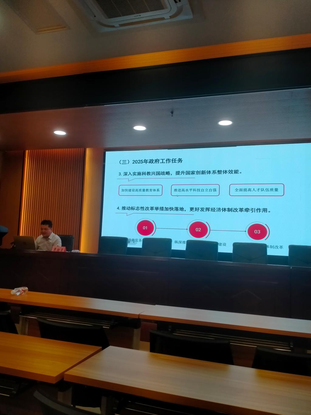 覃拥灵围绕全国两会精神进行深入宣讲,首先回顾2024年我国在经济社会发展方面取得的巨大成就,尤其是经济发展、加强生态环境?;ず驮鼋裆l淼确矫娴闹匾杉?,接着在展望2025年主要预期目标时要求,要在以习近平同志为核心的党中央坚强领导下,以习近平新时代中国特色社会主义思想为指导,全面贯彻落实党的二十大和二十届二中、三中全会精神,坚持稳中求进工作总基调,完整准确全面贯彻新发展理念,加快构建新发展格局,扎实推动高质量发展。