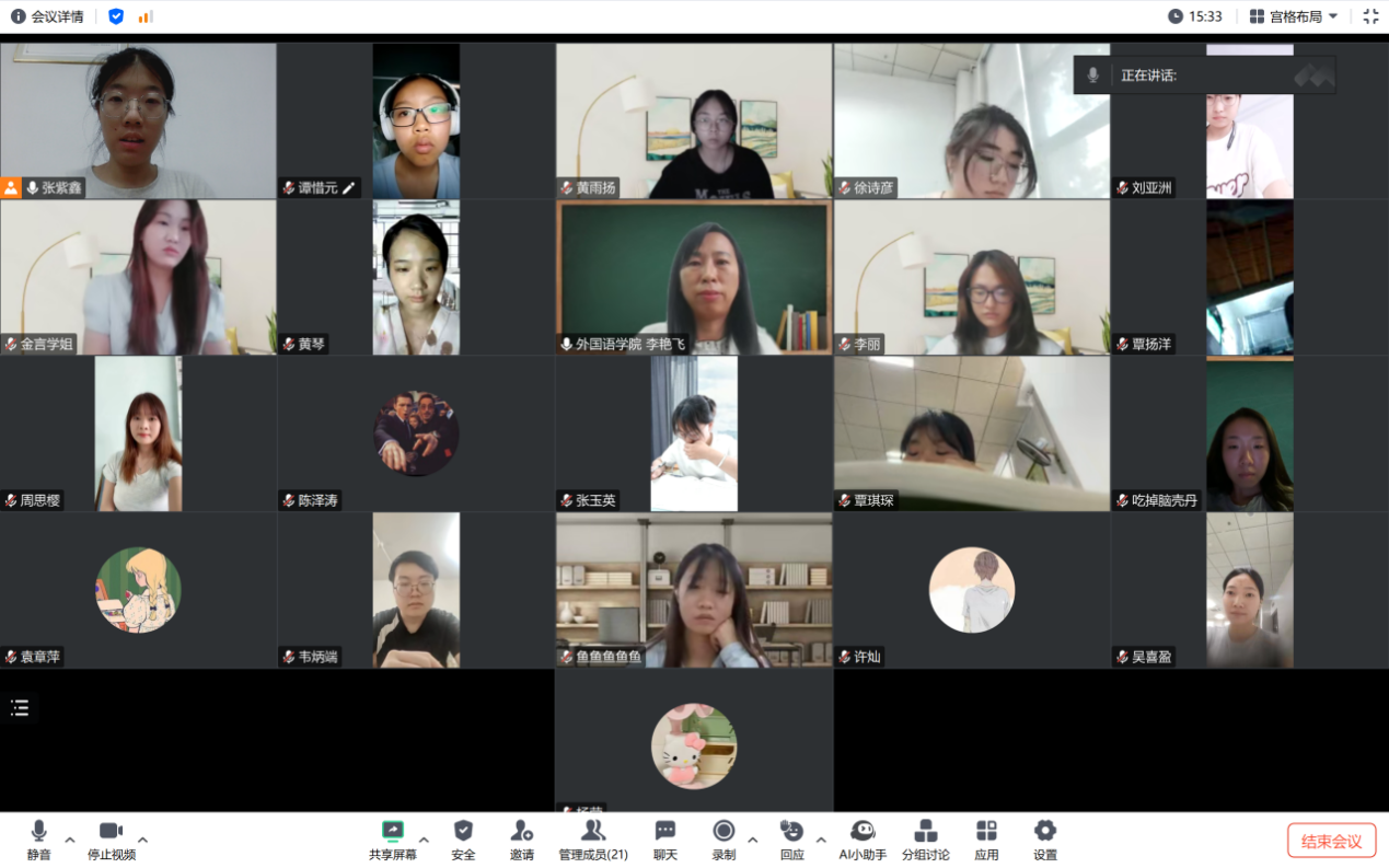 2025 年 6 月 18日下午,外国语学院(国际教育学院)在线上成功举办考研经验分享会?;嵋橛裳г焊痹撼だ钛薹芍鞒?,邀请孙金言、李丽两位成功考取硕士研究生的毕业生为2026届毕业生分享考研备考经验。