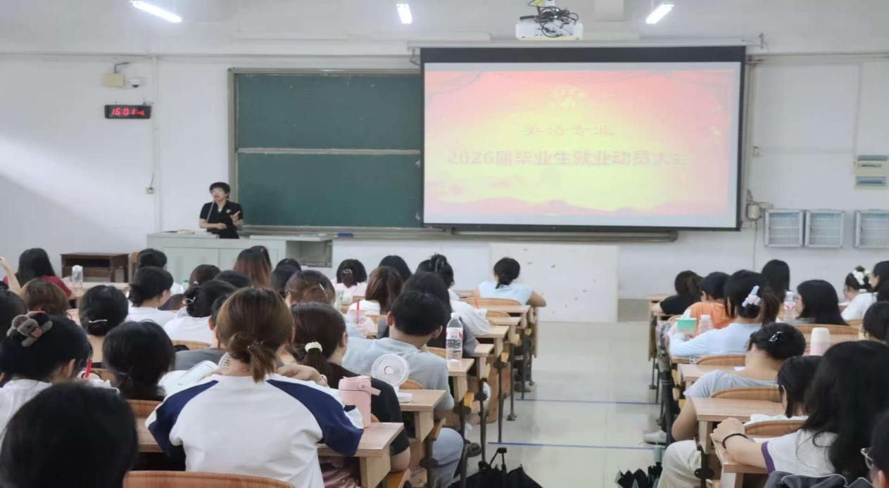 2026 届英语专业(师范方向)毕业生就业动员大会的顺利召开,为毕业生的实习就业工作明晰方向,助力外国语学院学子在实践与职场中乘风破浪,绽放青春光彩。(作者:蓝漫福 拍摄:杜可灿 校对:李凤 审核:周茜)