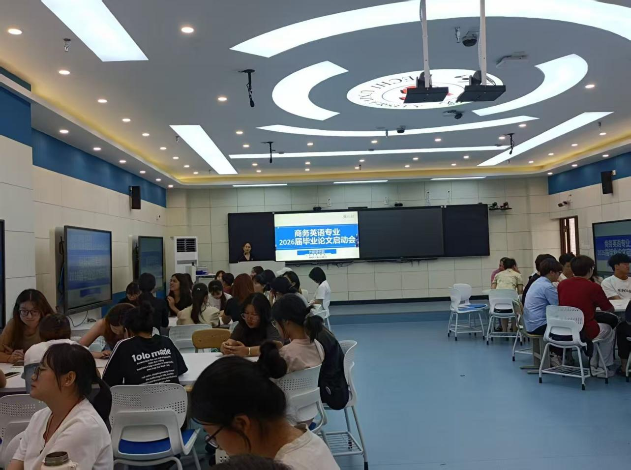 6月26日下午,外国语学院商务英语专业在格致楼601教室召开2022级本科实习与毕业论文工作启动大会。学院党委书记韦合、罗潇潇老师,黄会婷老师及相关论文指导老师出席会议,商英专业全体学生参会。